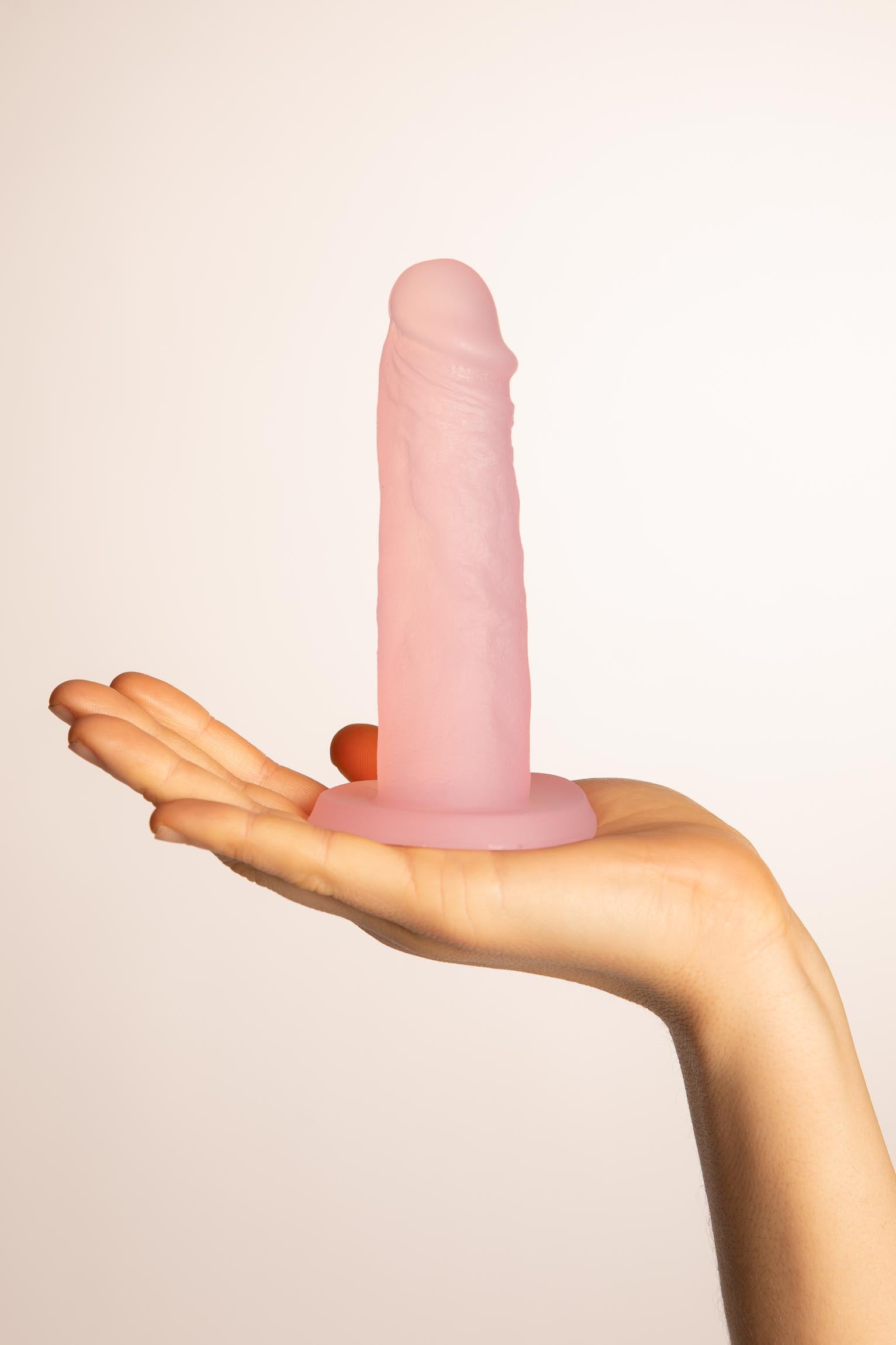 È realizzato in silicone morbido e sicuro per il corpo, che garantisce una sensazione confortevole. Questo dildo misura 14 cm, il che lo rende perfetto per i principianti. Attaccalo a qualsiasi superficie liscia o piana con la potente ventosa o usalo con un'imbracatura. Pulisci facilmente il dildo dopo l'uso con acqua tiepida e un detergente per toy.